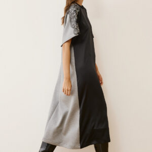Φόρεμα δύχρωμο με V λαιμόκοψη