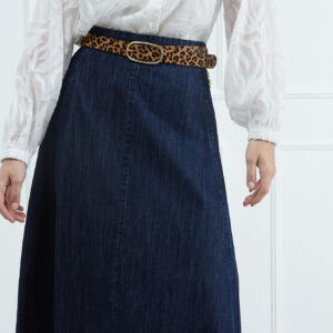 Φούστα σιφόν πλισέ με δερματινή ζώνη