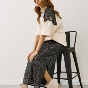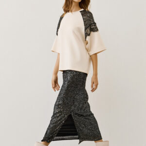 Μπλούζα με παγέτα και δαντέλα στο μανίκι