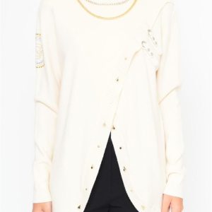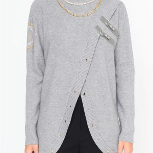 Mπλούζα πλεκτή με ασύμμετρη λαιμόκοψη και παγιέτες