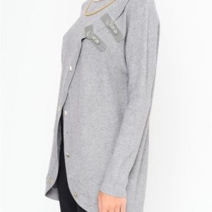 Πλεκτή μπλούζα με λεπτομέρειες από δερματίνη και αλυσίδα