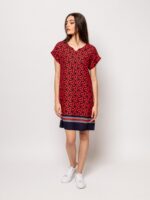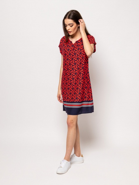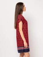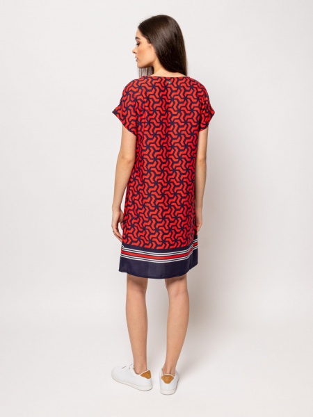 Γυναικείο κοντομάνικο φόρεμα με στρογγυλή λαιμόκοψη, πεσμένος ώμος, μανίκια με μανσέτες, μέχρι το γόνατο, ίσιο κόψιμο, συναρπαστικό σχέδιο.