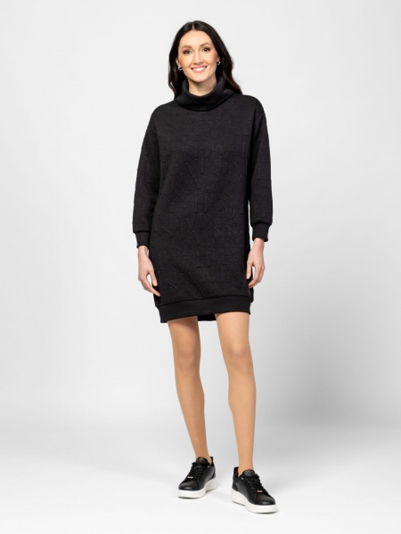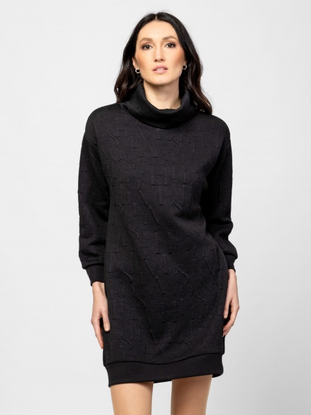 Γυναικείο φόρεμα με ζιβάγκο με φαρδύ κόψιμο, πεσμένους ώμους, μήκος πάνω από το γόνατο, ριμπ τελειωμένο κάτω μέρος και μανσέτες, μοτίβο λογότυπου, μικρό μαρκάρισμα στο κάτω μέρος μπροστά.