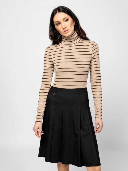 Μακρυμάνικο ζιβάγκο με λεπτή εφαρμογή, νήμα lurex πλεγμένο στις ρίγες, από βαμβάκι αναμεμειγμένο με ελαστάνη και μοντάλ, μικρό εμπριμέ μαρκάρισμα στην πλάτη, υφαντή ετικέτα στο πλάι